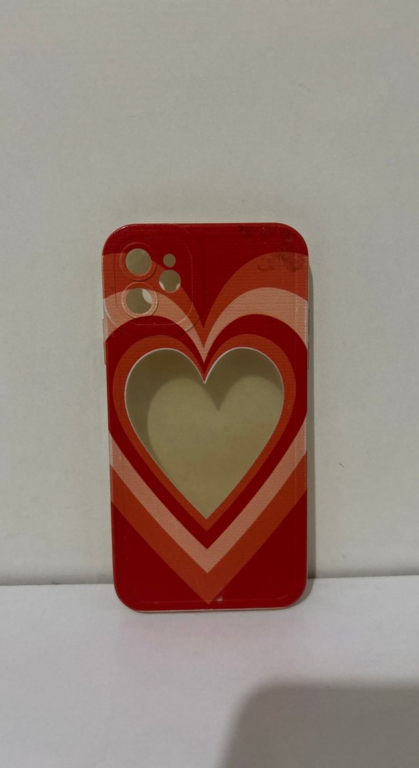Parlak kırmızı telefon kılıfı, renkli bohem kalp deseni ve kamera için kesik alan içerir. ❤️ iPhone 11 uyumlu