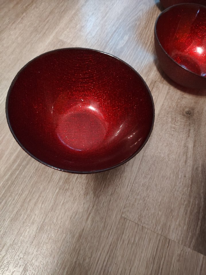 Parlak simli kırmızı renkte, desen içermeyen çağdaş tabaklar, servis için uygundur. ️4 adettir