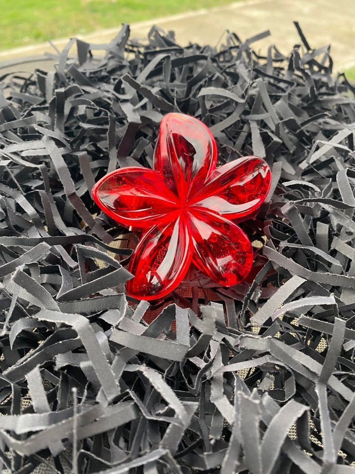 Parlak kırmızı camdan yapılmış, renkli çiçek şeklinde cesur bir saç tokası. Lotus Toka