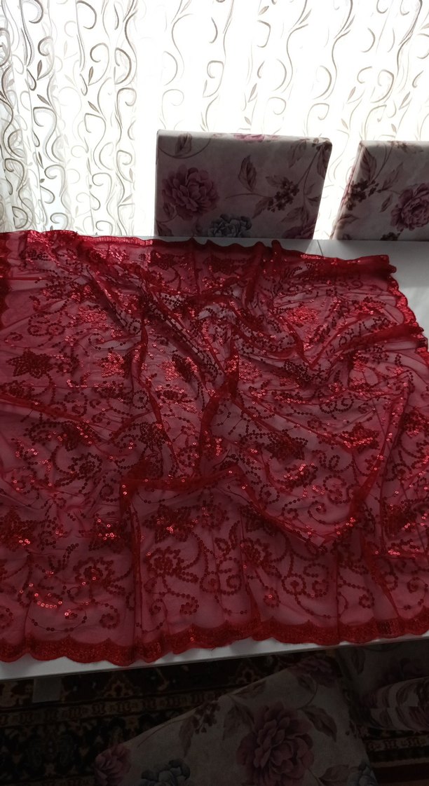 Parlak kırmızı sentetik kumaş ve karmaşık dantel detaylarına sahip duvak, göz alıcı ve modaya uygun bir görünüme sahiptir. ✨