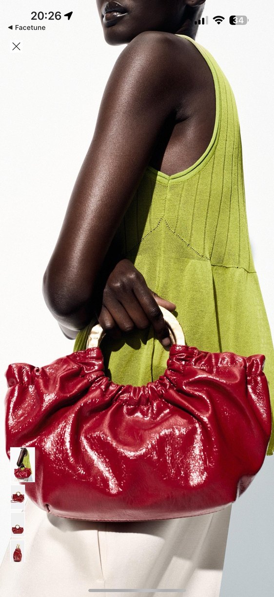 Zara Parlak kırmızı deri ve pileli tasarıma sahip, çağdaş kadın çantasıdır. Minimalist ve avangart tarzı günlük kullanıma uygundur.