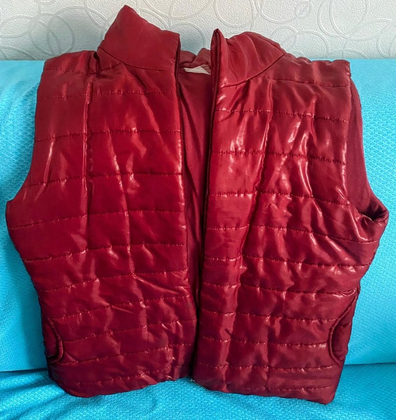 Parlak kırmızı deri, fermuarlı ön ve kesik yaka detaylı, dar kesim kadın yelek. Kolsuz ve midi boy, günlük sokak stili için uygun.