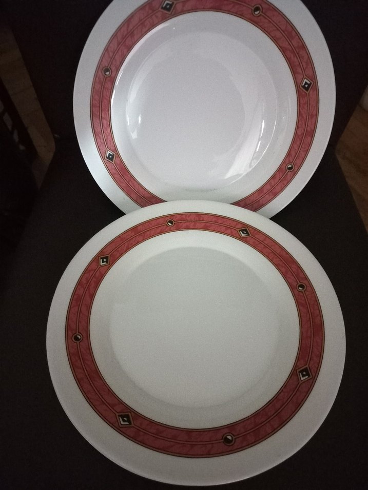 parlak kırmızı desenli kenarları küçük süslemeler içerir. servis sunumu için uygundur. ️
