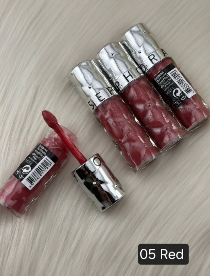 Sephora'nın 05 Red tonunda parlak kırmızı dudak parlatıcısı, canlı ve parlak bir görünüm sağlar.