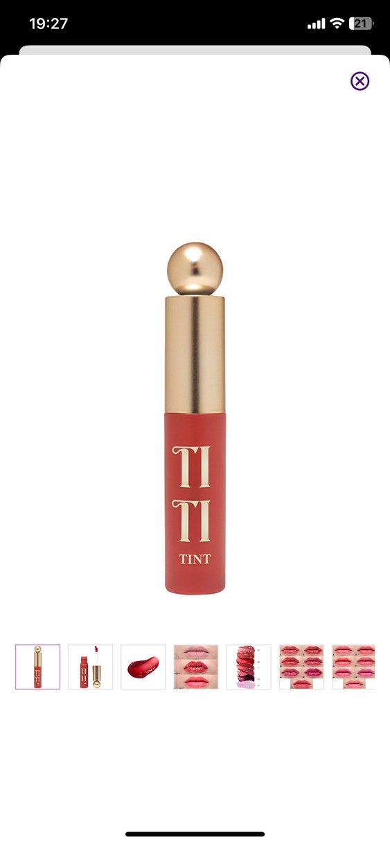 Parlak kırmızı renkte, üzerinde "TINT" yazan dudak parlatıcısı. Dudaklara renkli ve parlak bir görünüm kazandırır.