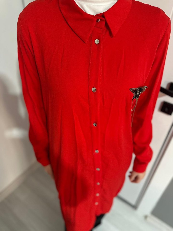 Parlak Kırmızı Düğmeli Kadın Gömlek