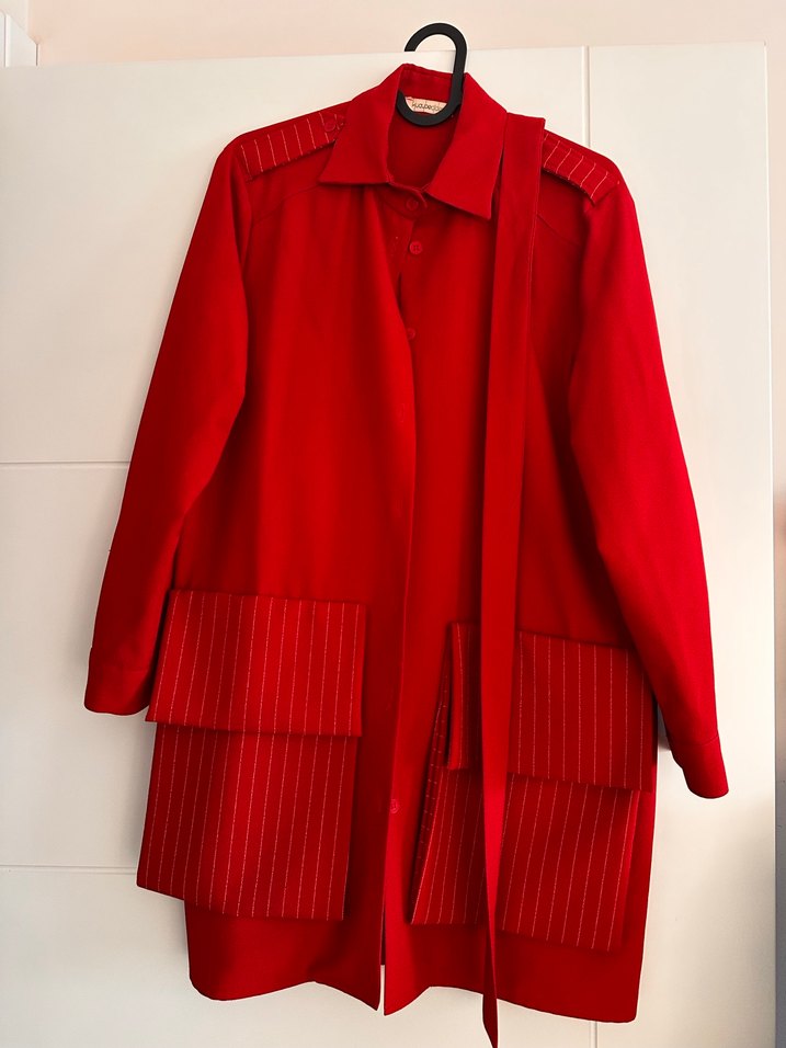 Parlak kırmızı, tunik , uzun kollu ve önünde çizgili büyük cepler bulunur. Ofis için şık bir seçenek Kuaybe gider marka 36 beden