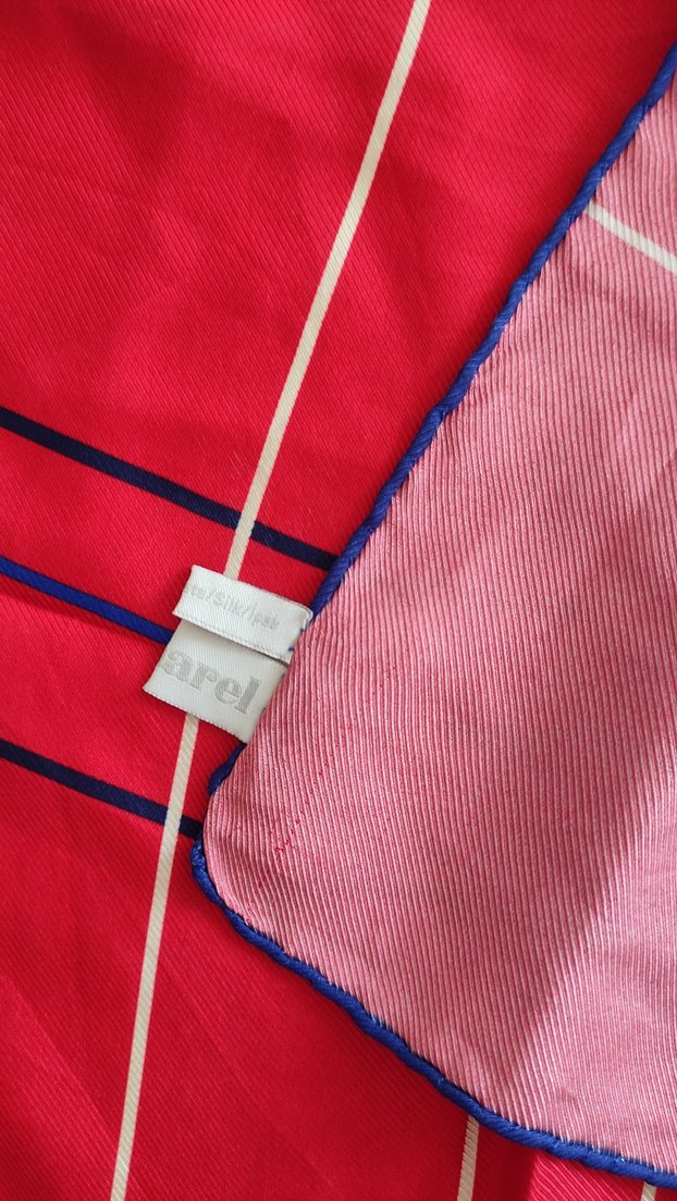 Parlak kırmızı renkte, fermuarlı detaylı kadın fular. Pürüzsüz sentetik kumaştan yapılmış, Parisli avangart tarzını yansıtan modern tasarım.