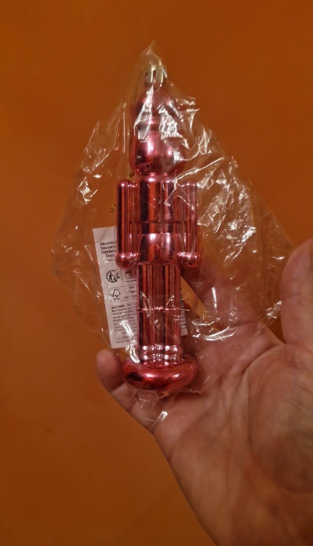 Parlak kırmızı renkte, yansıtıcı yüzeye sahip dekoratif figürin. Düzgün ve parlak bir yüzeyi vardır, dik şekilde durur.