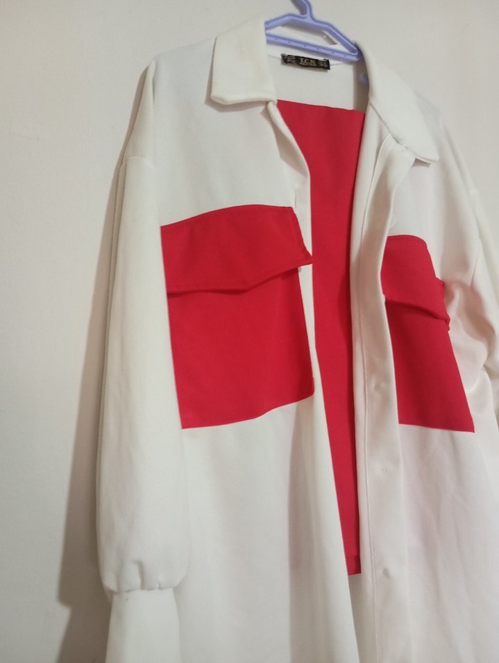 Parlak kırmızı renkte, minimalist tasarıma sahip kadın ikili gömlek pantolon takim