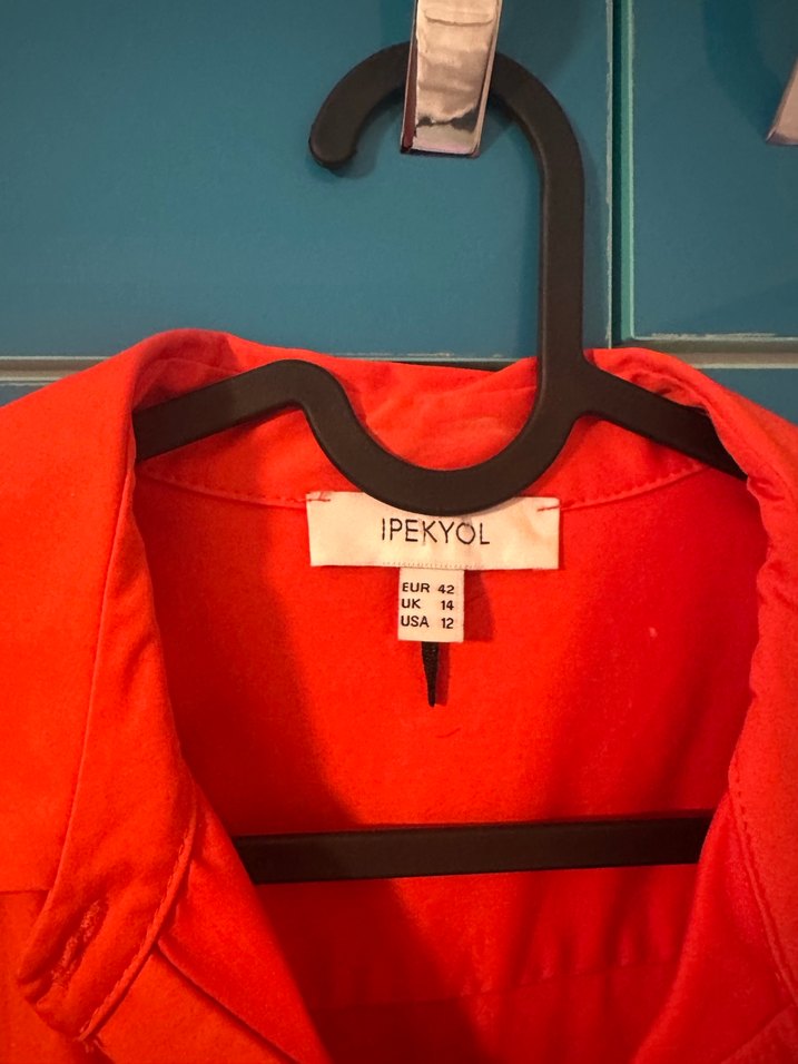 Parlak kırmızı renkte İpekyol elbise Dar kalıp olduğu için 40 bedene daha uygun Alıcısına mutluluk getirsin ♥️
