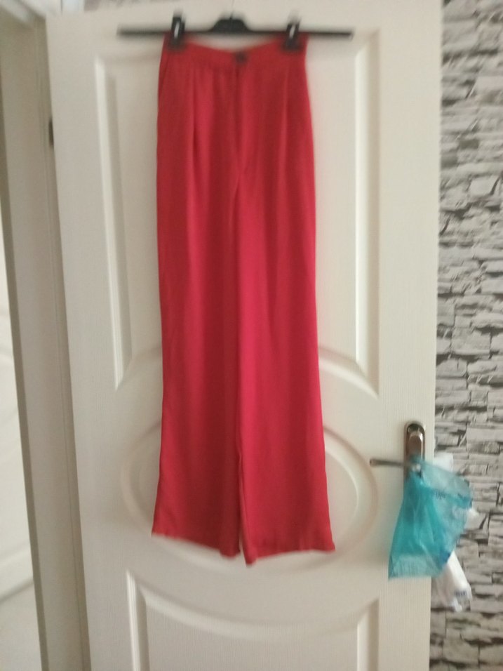 Parlak kırmızı renkte, uzun ve regular fit kadın pantolon. İpeksi kumaştan, drapeli tasarıma sahip, minimal ve normcore stil için uygun.boy uzunluğu 103 cm bel 28 cm basen 40 cm bel kısmı lastikli