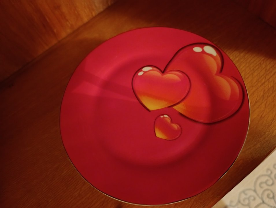 Parlak Kırmızı Kalp Desenli Tabak