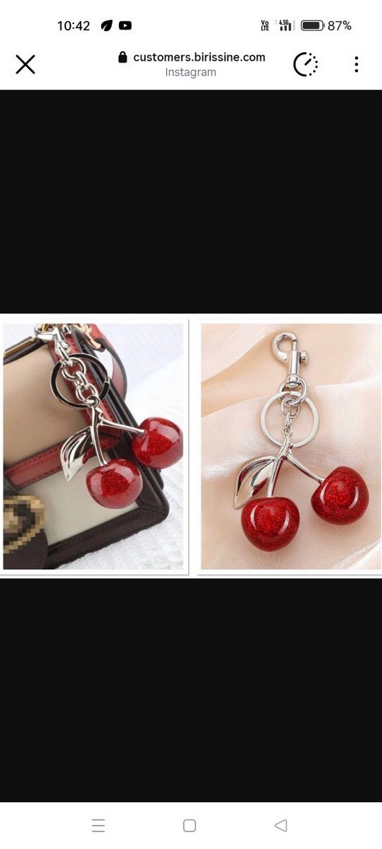 Parlak kırmızı kiraz şeklinde, çağdaş ve göz alıcı tarzda, cesur görünüme sahip anahtarlık.