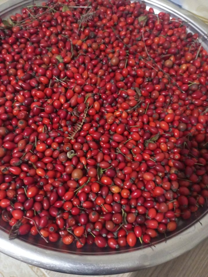 Parlak kırmızı ve taze görünümlü kuşburnu meyveleri.
