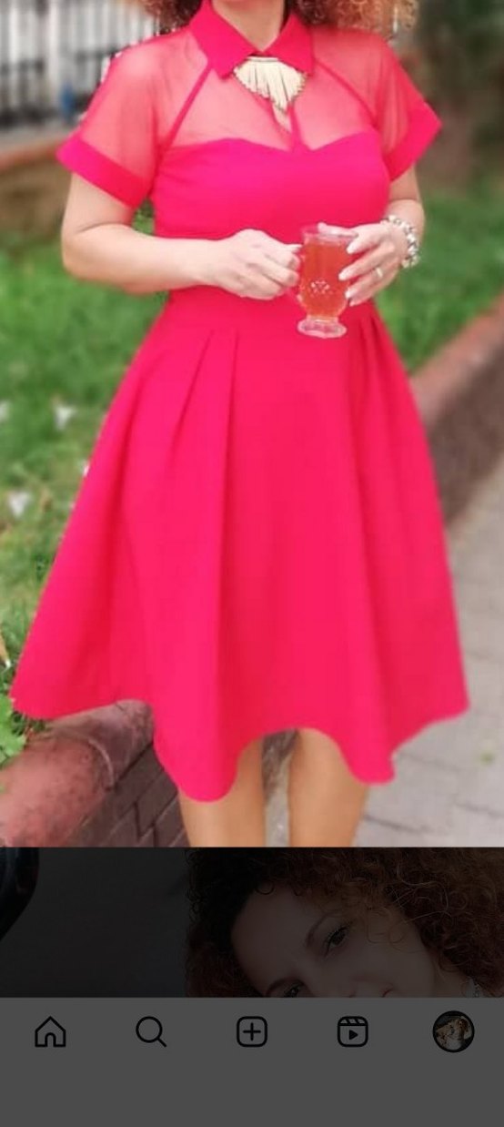 Parlak kırmızı sentetik kumaştan, dökümlü ve bol kesim midii, şık parti kombinleri için uygundur.