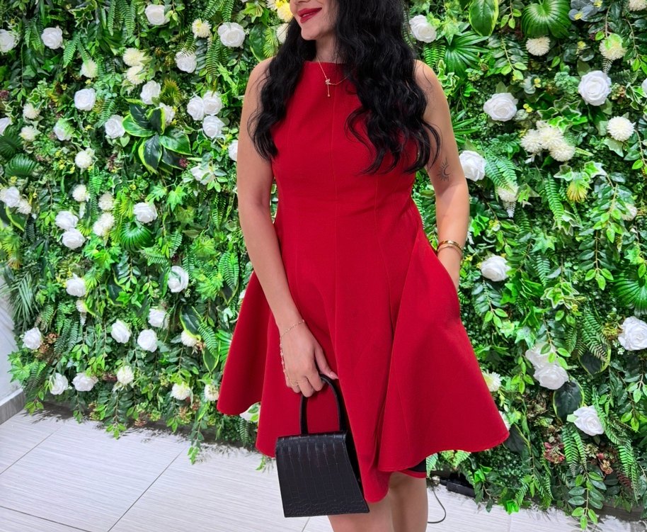 Parlak kırmızı, askılı kısa drapeli elbise Beden: L (Large) Renk: Canlı Kırmızı Temiz kullanılmıştır, herhangi bir lekesi, söküğü veya deformasyonu yoktur. Arka kısmında gizli fermuarı bulunmaktadır.