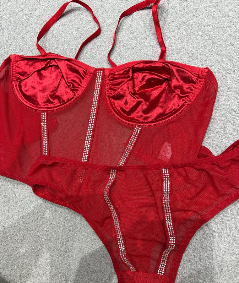 Parlak Kırmızı Mini İşlemeli Sütyen