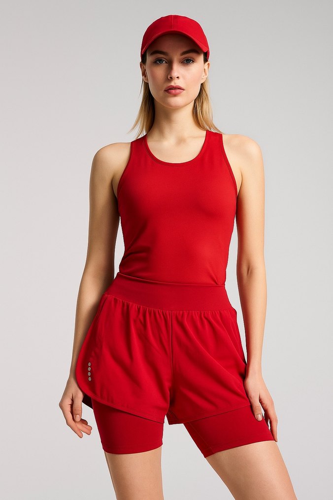 Parlak Kırmızı Mini Spor Şort