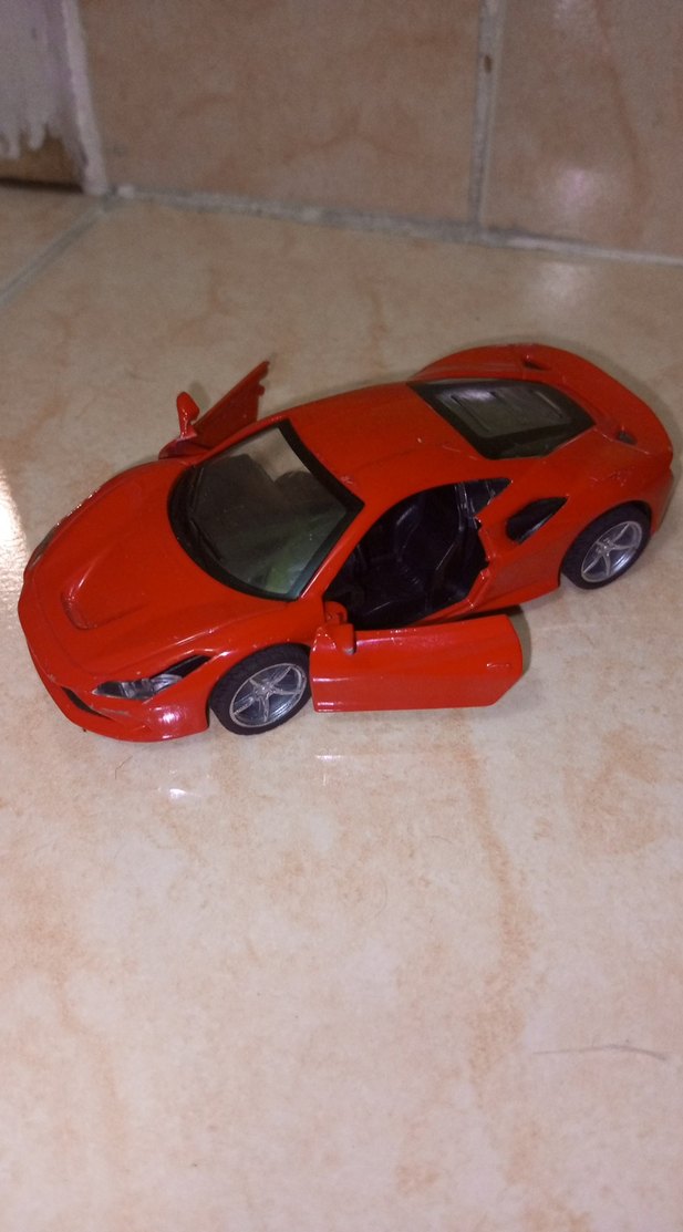 Kapıları açılabilen, ayrıntılı tasarıma sahip parlak kırmızı oyuncak araba.