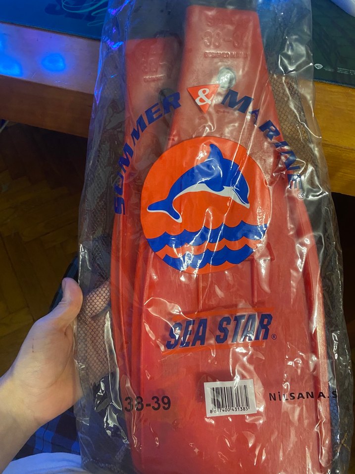 Parlak kırmızı renkte, 38-39 numaraa yüzme paleti, SEA STAR markalıdır.