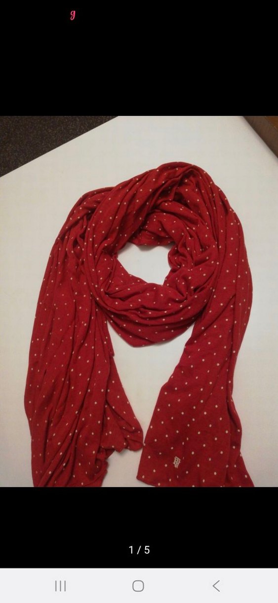 Parlak kırmızı renkte, drapeli tasarıma sahip kadın fular. Yumuşak sentetik kumaştan üretilmiş, minimal ve bohem tarzlarla uyumlu. En ölçüsü 110 cm orijinal. uc kısmına yakın bir yerde kucuk bir delik var görselde görunuyor