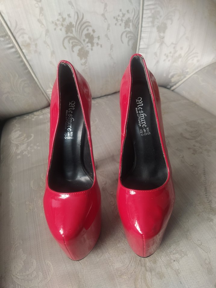Parlak kırmızı rugan stiletto topuklu, minimalist gotik tarza sahip kadın ayakkabısı. Romantik randevular için uygundur. Kauçuk malzemeden üretilmiştir. ❤️