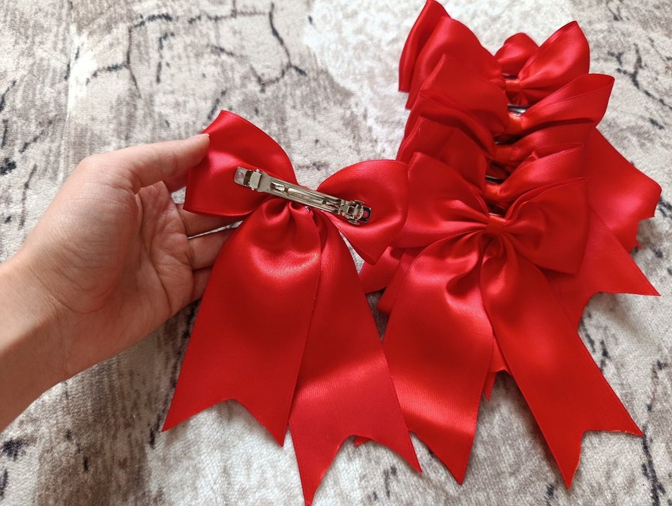 Parlak kırmızı saten kumaştan yapılmış, metal tokalı fiyonk şeklinde saç aksesuarı. Glamour ve goth tarzlarına uyum sağlar. Tanesi 80 TL dir