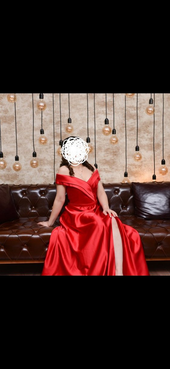 Parlak kırmızı kumaştan, drapeli detaylı, tek parça uzun ve vücuda oturan abiye elbisedir. Kayık yaka ve ince askılı kollara sahiptir, düğün için uygundur. Sadece 1 kez giydim yepyeni olduğu gibi duruyor. deforme falan yok.
