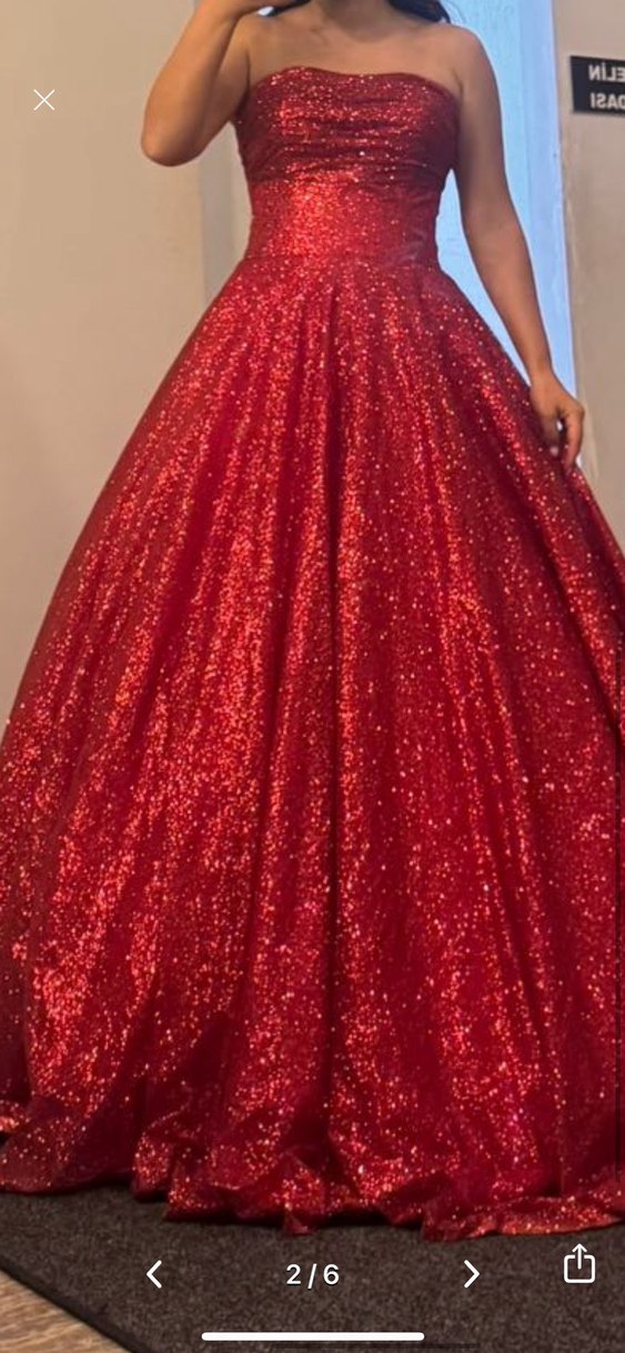 Parlak Kırmızı Straplez Uzun Abiye