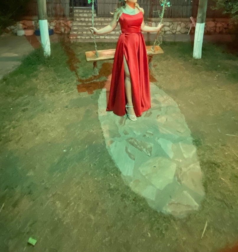 Parlak Kırmızı Uzun Askılı Abiye Elbise 155 boy içim uygun