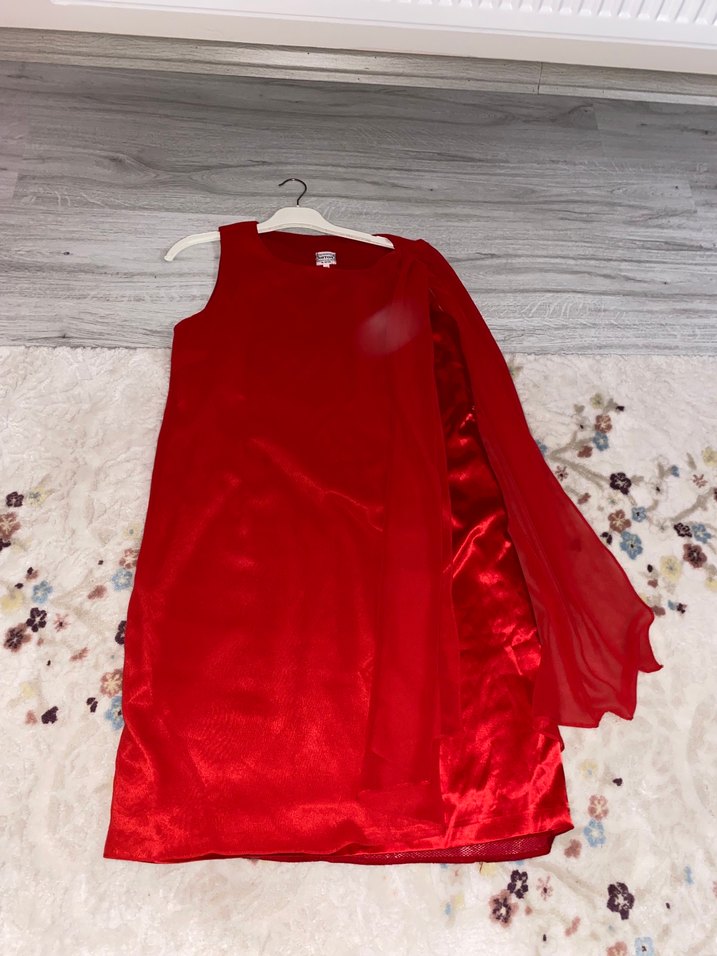Parlak Kırmızı Uzun Drapeli Kadın Abiye Elbise 44 beden