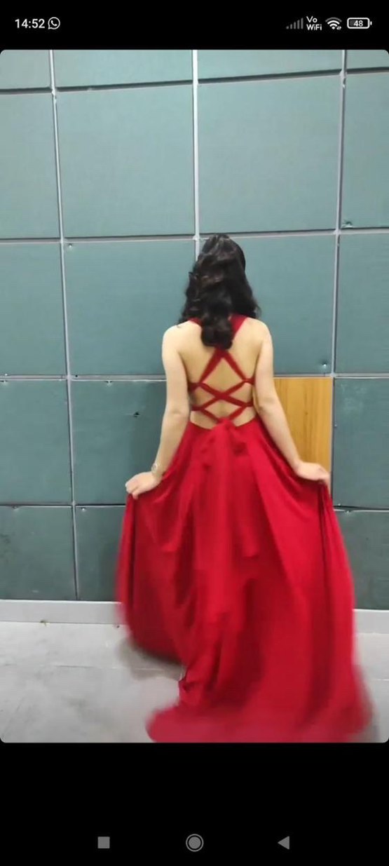 Çok beğenerek aldığım ve sırt duruşu kibar şifon elbise. Fotoğrafta göründüğü gibi bordo değil tam kırmızı. 36-38-40 bedenlere çok rahat uyumlu. Yırtığı falan yok. Bir daha giymeyeceğim için satıyorum