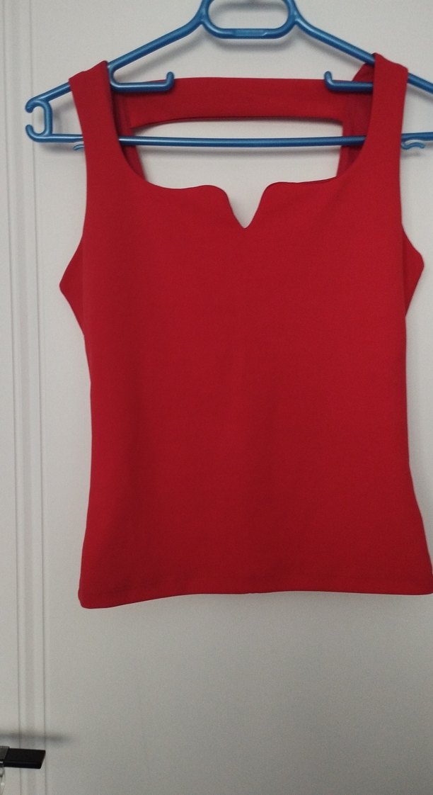 Parlak kırmızı renkli, V yaka ve kolsuz, vücuda oturan mini atlet. Minimalist ve cesur sokak stili, zahmetsiz şıklık sunar.