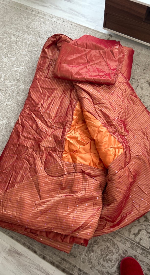 Yanar dönerli, çiçek pullu, tüllü ve kendinden çizgili çok eğlenceli pofidik yatak örtüsü. 250*250cm. 60*80 cm 2 adet yastık kılıfı ile birlikte gönderilecektir. yatak odasına canlılık katar. ️