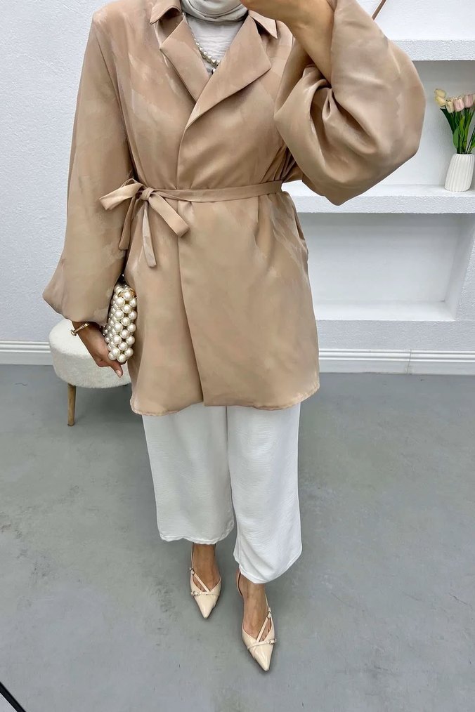 Şeffaf tasarımlı beyaz midi boy yağmurluk, yüksek yakalı ve uzun kolludur. Rahat kesimi ve etnik deseniyle sokak stiline uygundur. ️