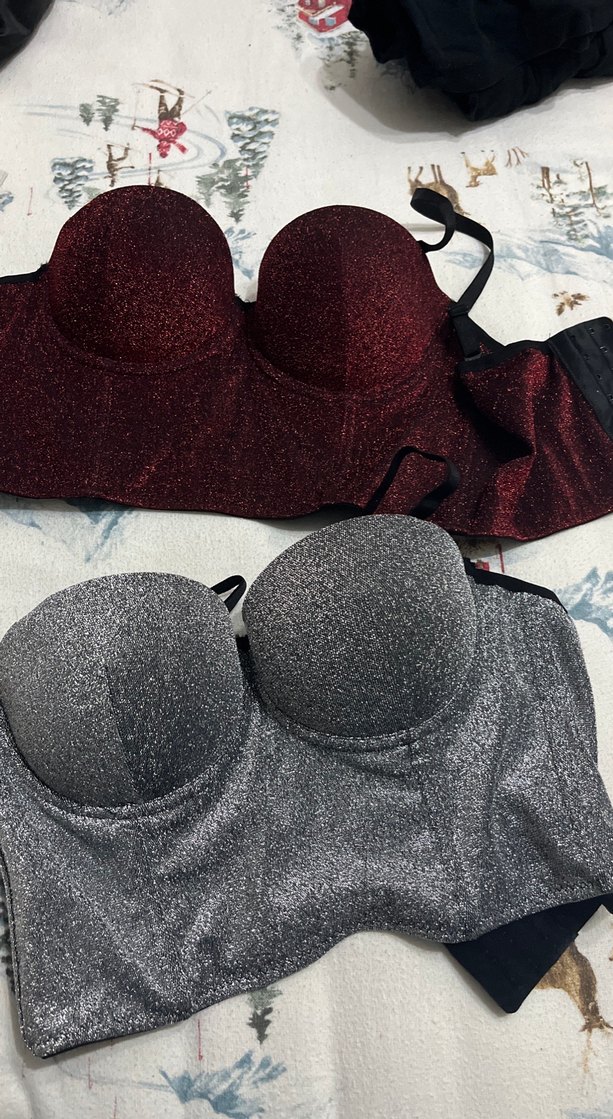Bordo ve gri renklerde, parlak sentetik kumaştan yapılmış, straplez ve askılı detaylı, cesur goth tarzı yansıtan bustiyerler. ✨ 85 beden tek fiyattır istediğinizi alabilirsiniz
