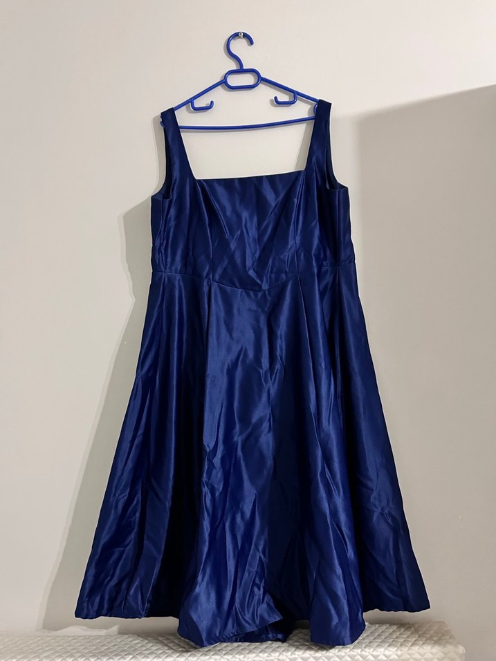 Parlak Lacivert Drapeli Midi Abiye Elbise