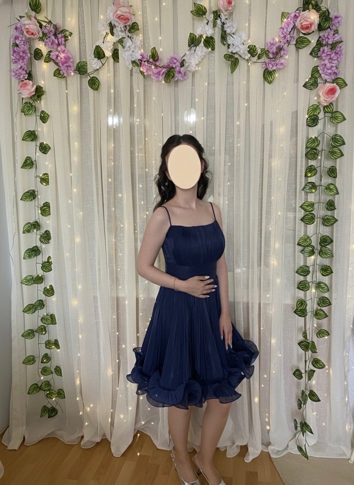 36 beden. Söz Nişan Mezuniyet Kına Elbisesi. Parlak lacivert, drapeli ve askılı kolları olan midi abiye elbise. Straplez, vücuda oturan kesimiyle özel davetler için uygun.