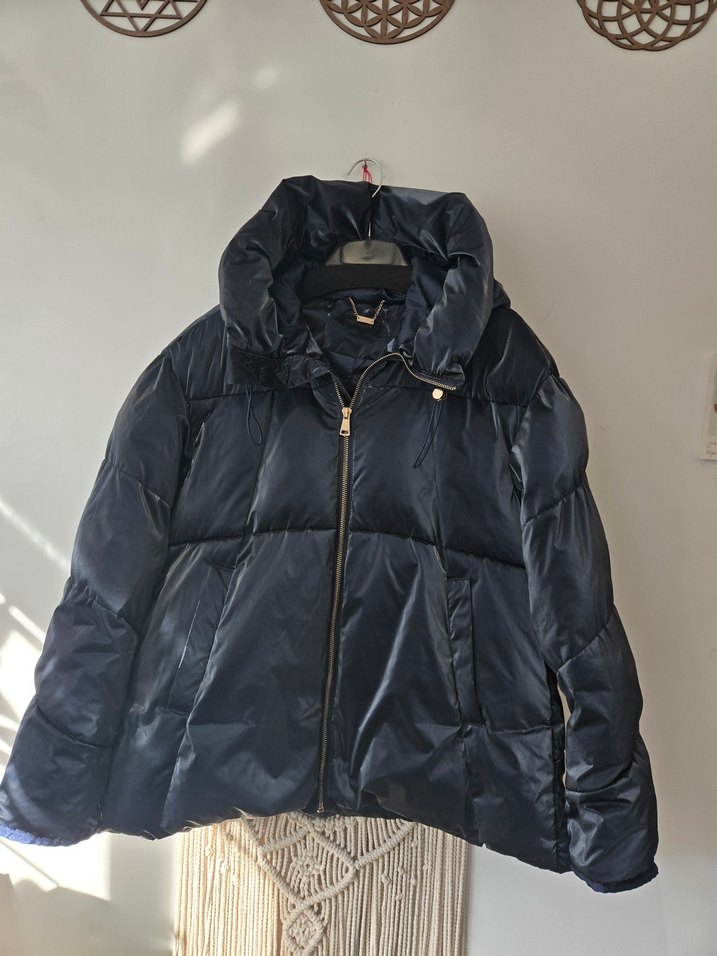Parlak Lacivert Fermuarlı Kadın Mont