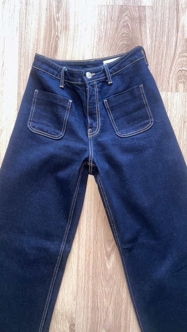 lacivert renkte, yüksel bel ve regular fit kesime sahip kadın denim pantolon., ön cep detaylarıyla günlük kullanıma uygun, zahmetsiz şıklık sunar. Birkez kullanıldı