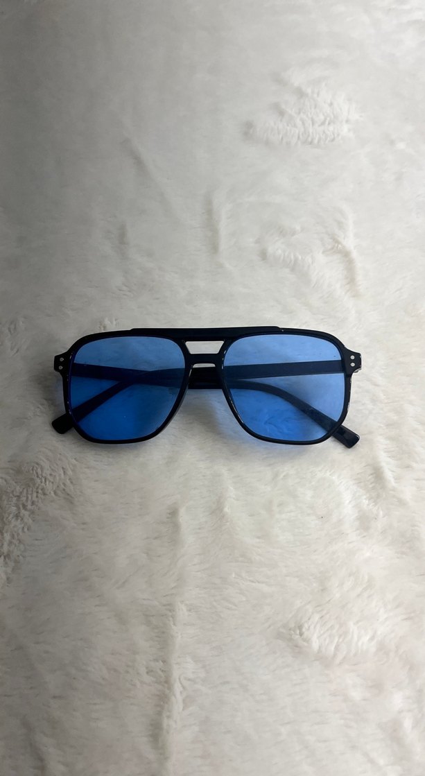 Minimalist sokak stiliyle parlak lacivert kadın güneş gözlüğü, trend rahat görünüm için uygun. ️