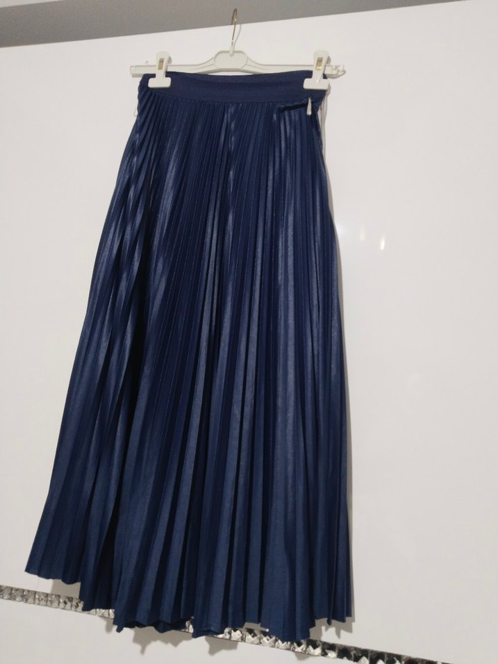 Parlak Lacivert Pilili Uzun Kadın Etek