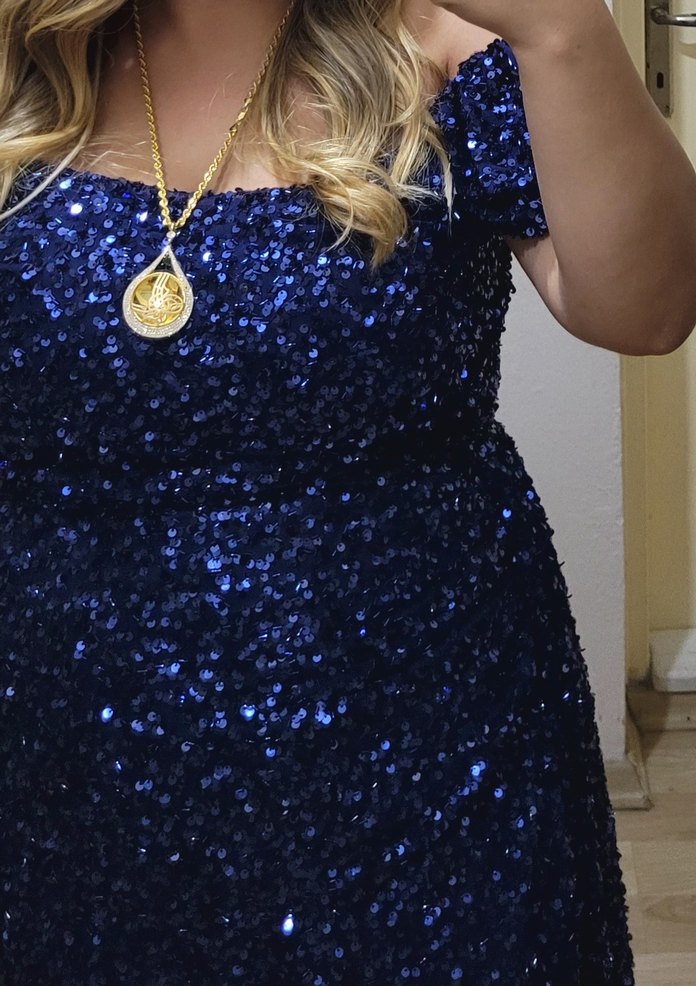 Parlak lacivert simlerle süslenmiş, yılan desenli, tekne yaka ve askılı kollu, klasik şıklıkta uzun abiye elbise. ✨ Ürün bir gece giyildi kuru temizlemeye ihtiyacı var 48 beden ama esnek kumastir 78 kiloyla giyildi yandan yirtmaci vardır. Pazarlık mevcut