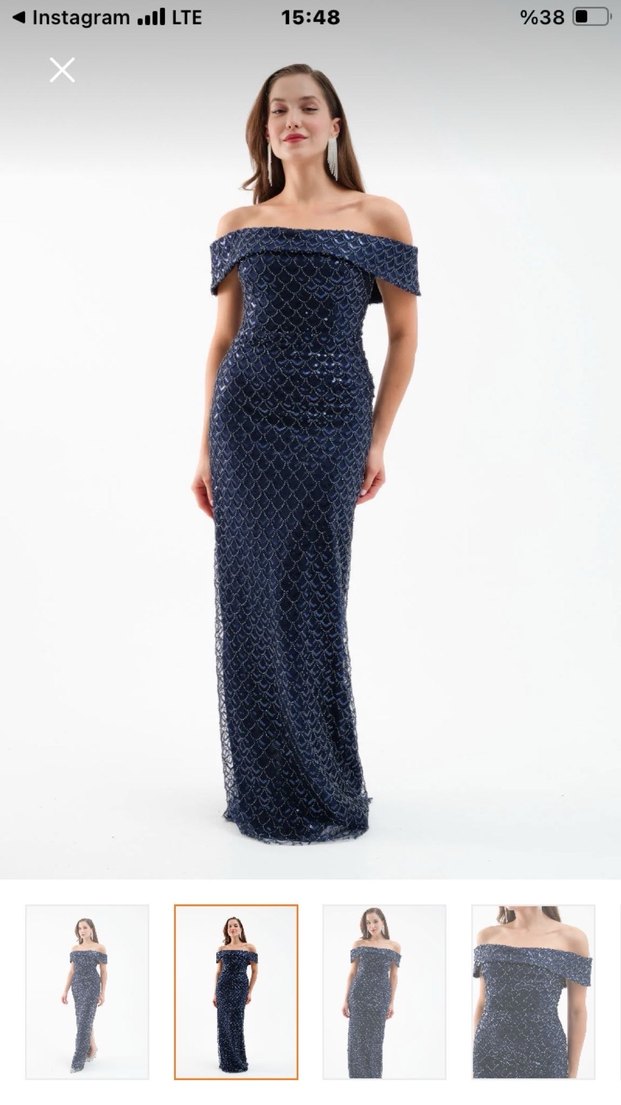 Lafabanın geldiği gibi biten modeli. Hiçbir tadilat yoktur. 40 beden 38-40 beden uyumludur. Hiçbir problemi yoktur. 159 boyla giydim altı uzun kalıyor isteyen boyuna göre kestirir yürürken rahatsız etmiyor. Tam kalıp. Bu dar kesim uzun abiye elbise, tekne yaka ve drapeli tasarımıyla parlak lacivert deseni içerir. düğünler için uygundur. ✨