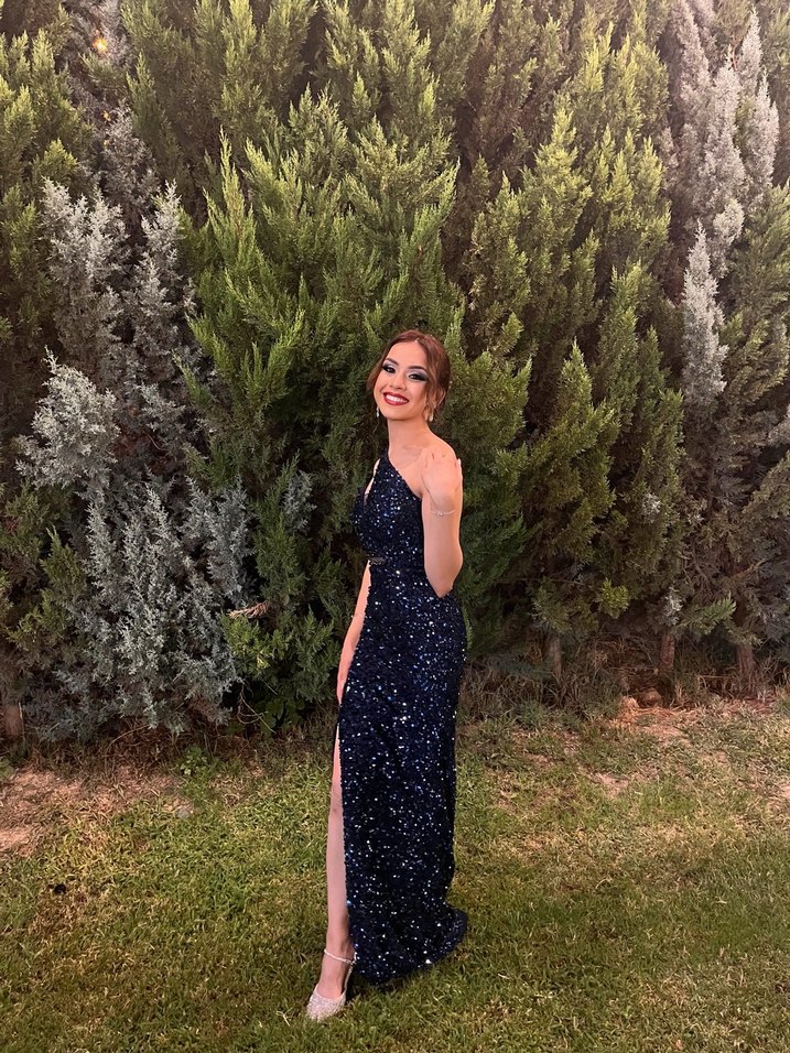 Parlak detaylara sahip, lacivert tie-dye desenli, uzun ve straplez abiye elbise. Sıkı kesimi ve ince askılarıyla cesur ve göz alıcı bir parti tarzı sunar. ✨