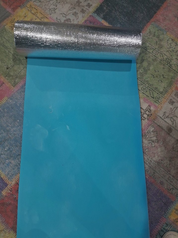 Parlak mavi renkte, baskılı desenli egzersiz matıdır. Rahat kullanım sağlar ve kolayca rulo yapılarak taşınabilir. ♂️