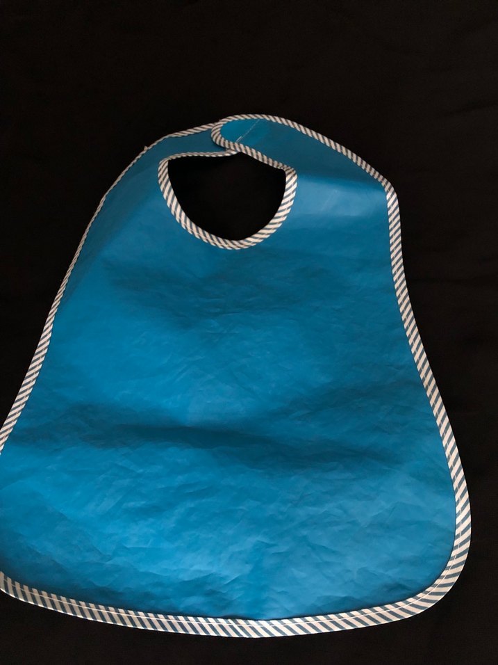 Parlak mavi renkli, çizgili kenarlıklı ve boyun kısmından kapanan bebek önlüğü. Naylondur gayet büyük boyutta, temizleme kurutma dersi yok hemen sil ya da yoka kullanışlı. Temizdir göründüğü gibidir. Hayırlı olsun şimdiden