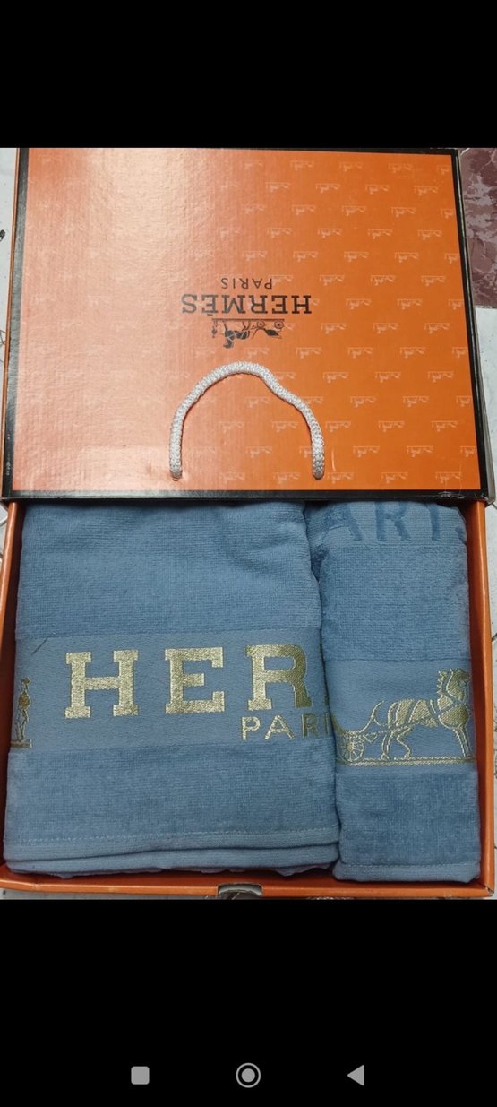 Parlak mavi renkte, bohem desenli havlu seti. "HER" yazısı ve dekoratif detaylar içerir. Markalı kutuda sunulur.
