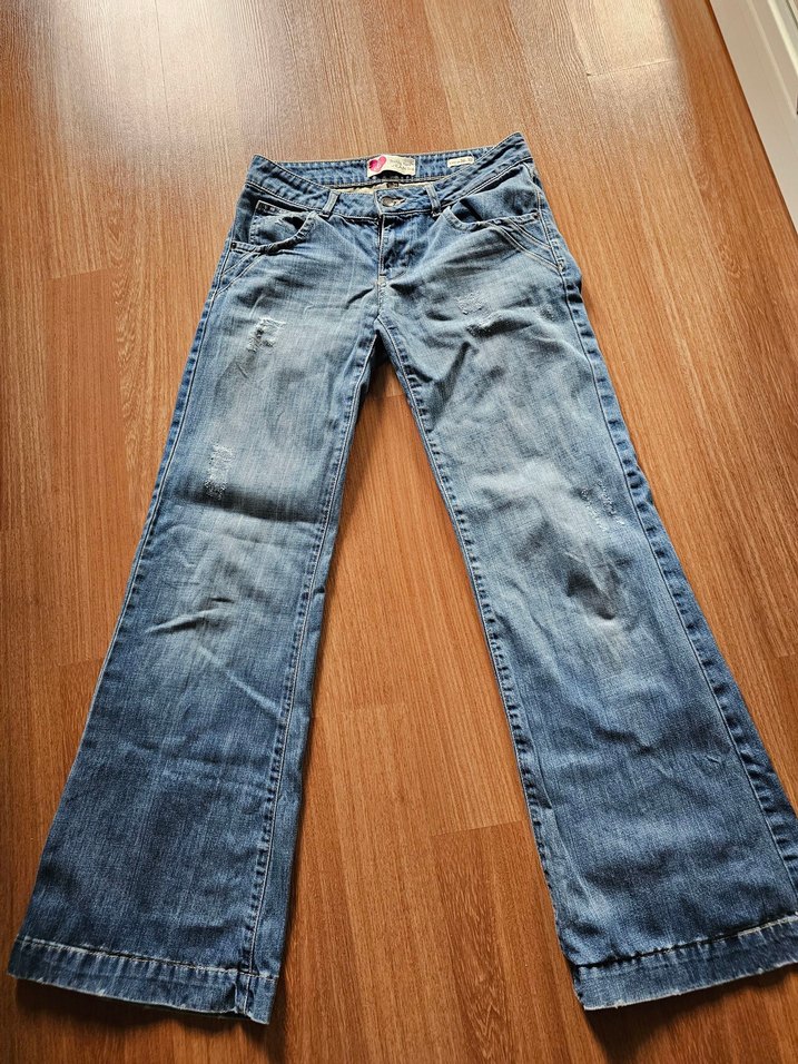 Parlak mavi renkte, bol kesim kadın denim pantolon. Tokalı detaylı, günlük rahat kullanıma uygundur. Koton marka